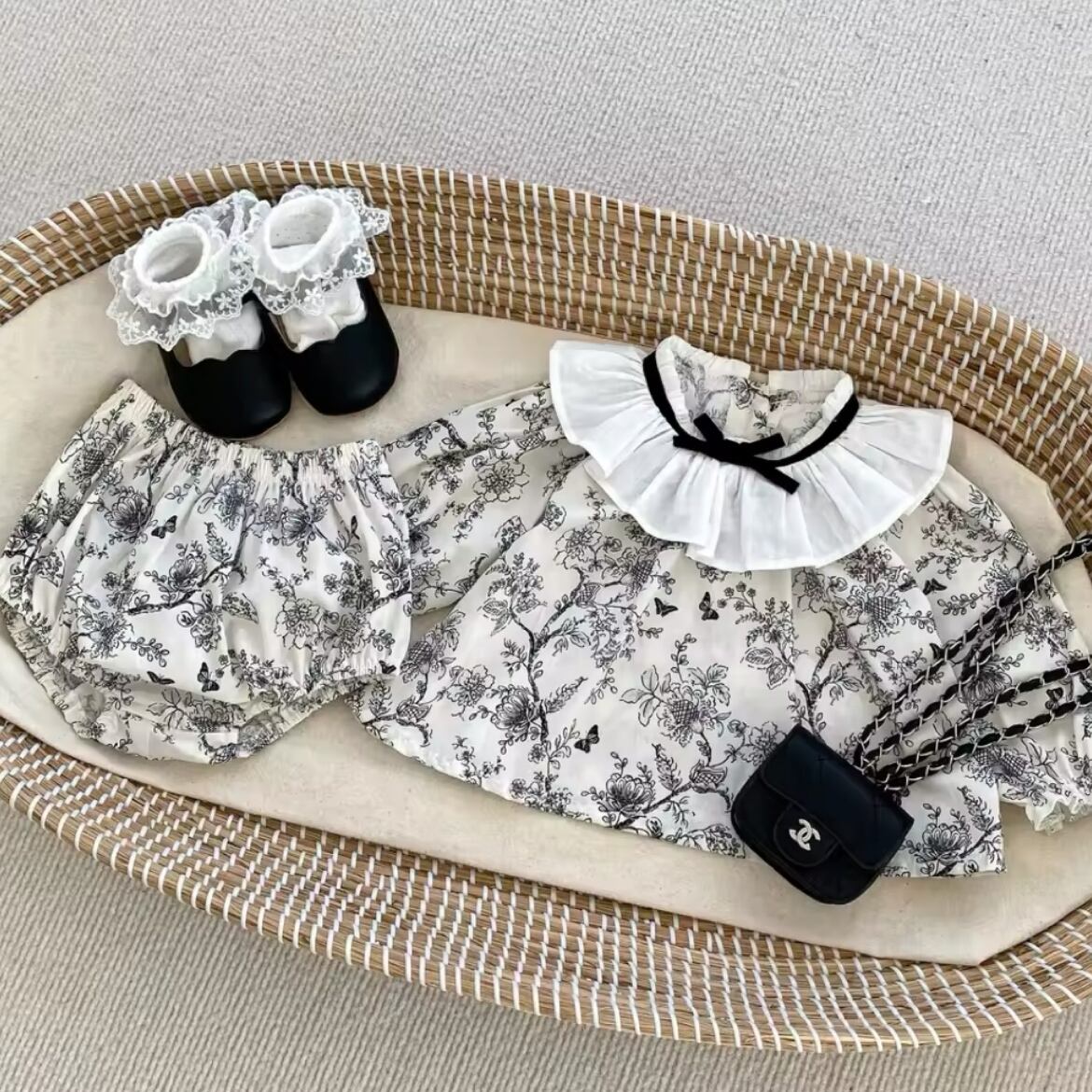 フリル襟フラワーセットアップは、華やかなフラワーデザインとキュートなフリル襟が特徴の魅力的なアイテム♡