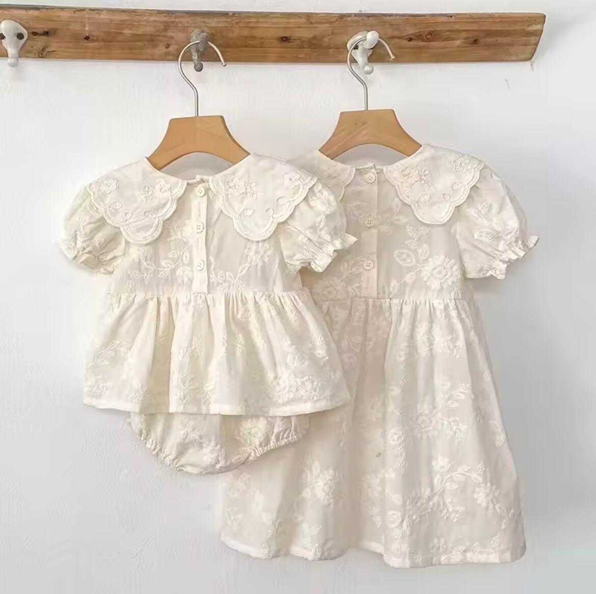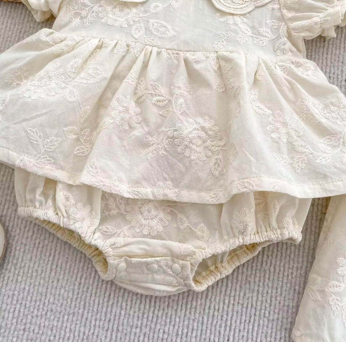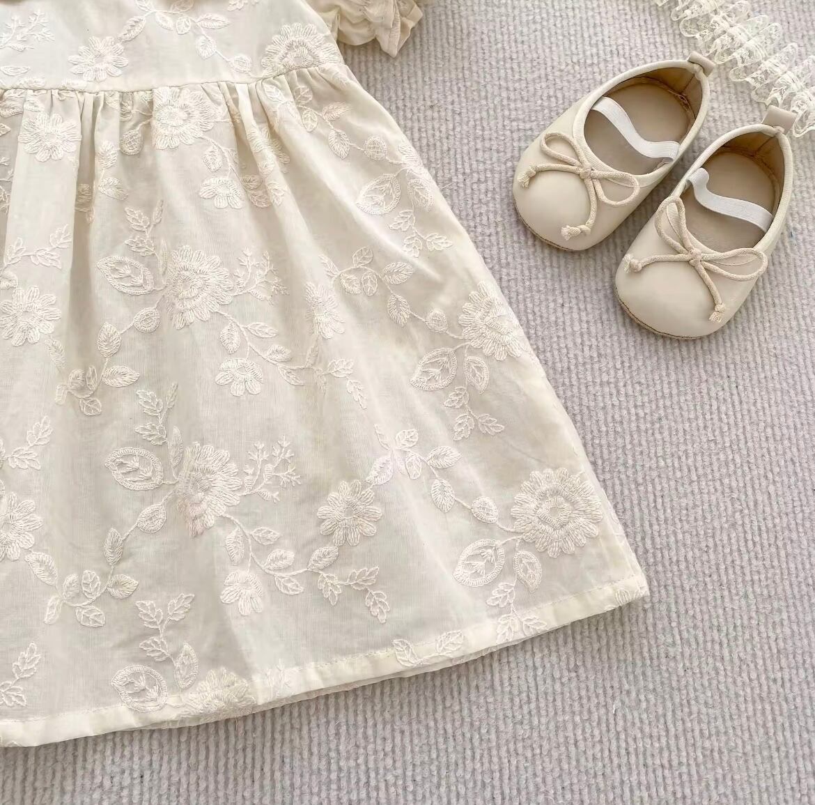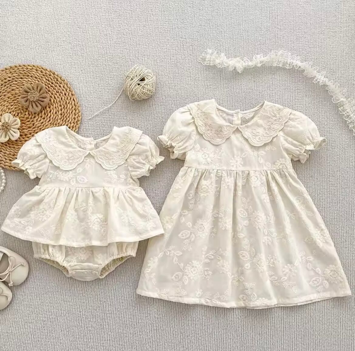 ナチュラルレースワンピース・ロンパースは、優雅なレースディテールとナチュラルな素材感が特長の特別な日のためのアイテムです!