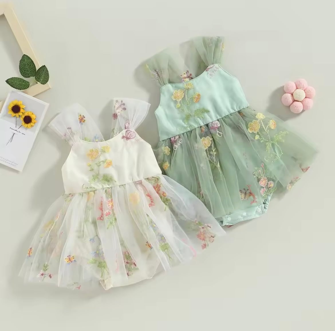 フローラルドリームチュールロンパースドレス