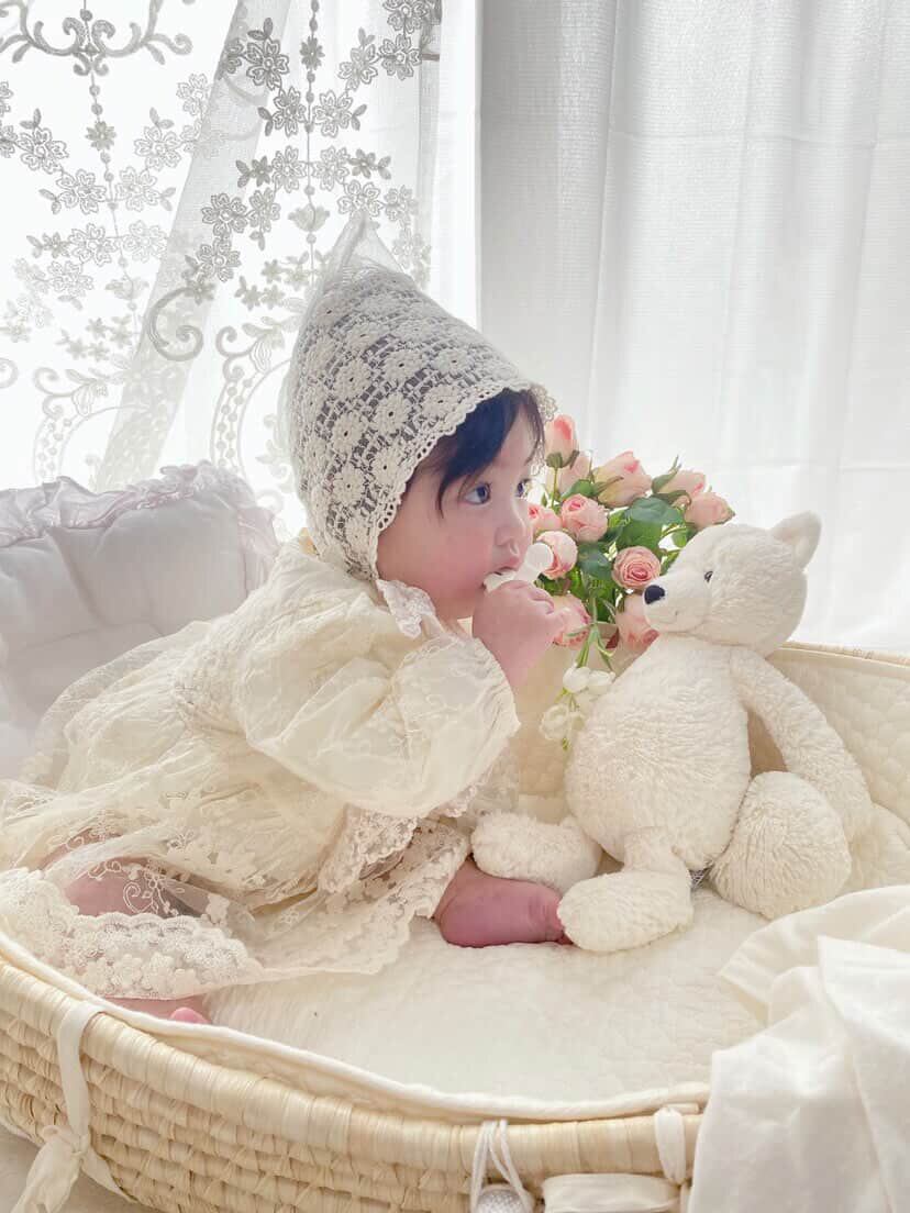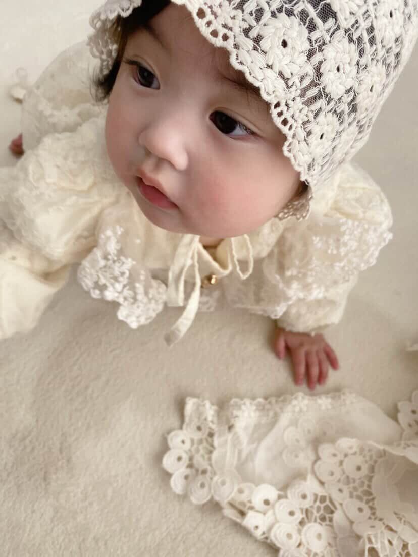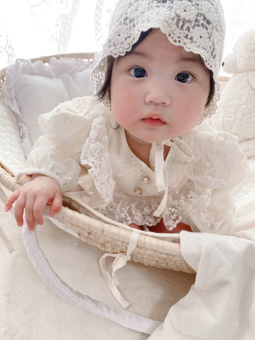 柔らかな素材感で、ハーフバースデーやお宮参り、記念撮影などのシーンにおすすめの1着です♡