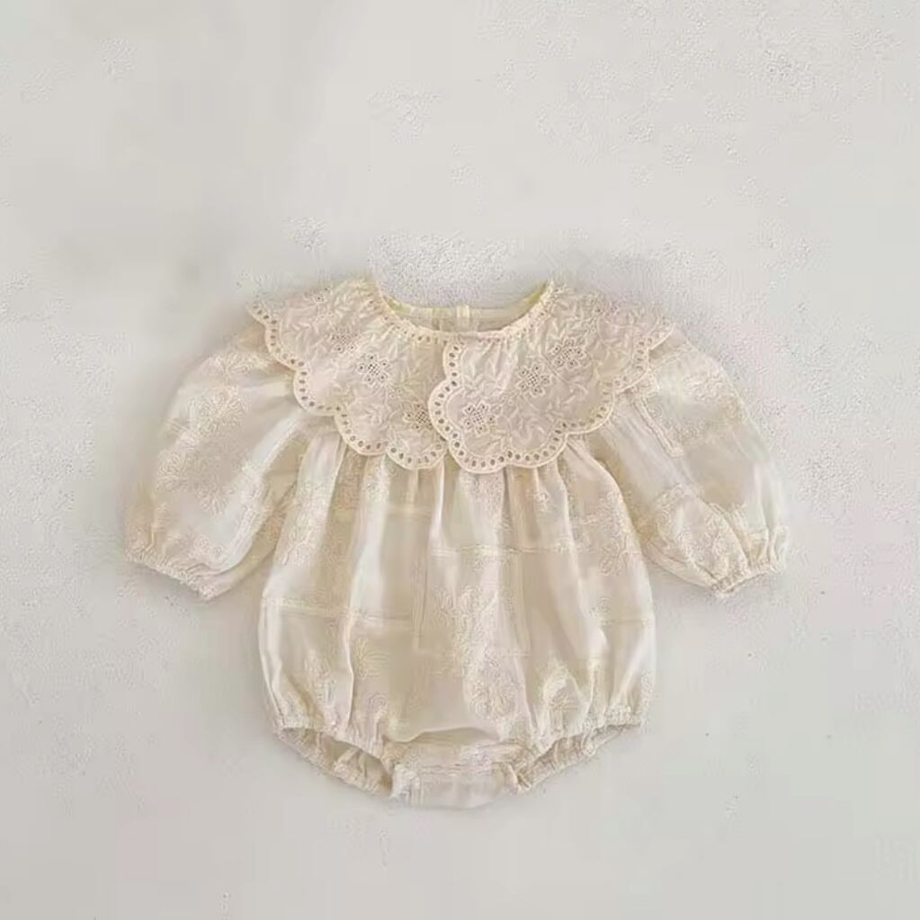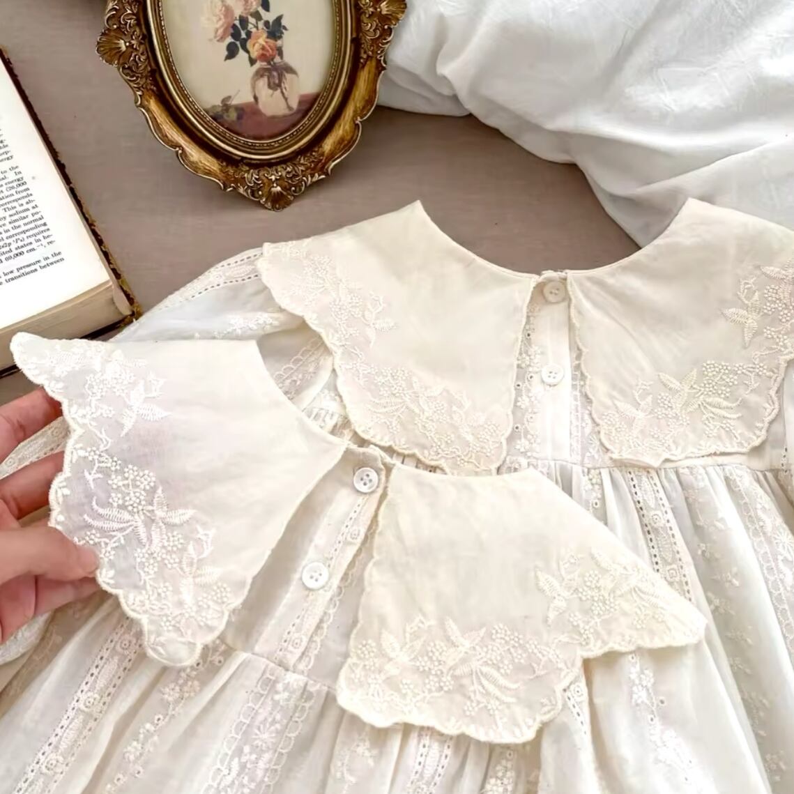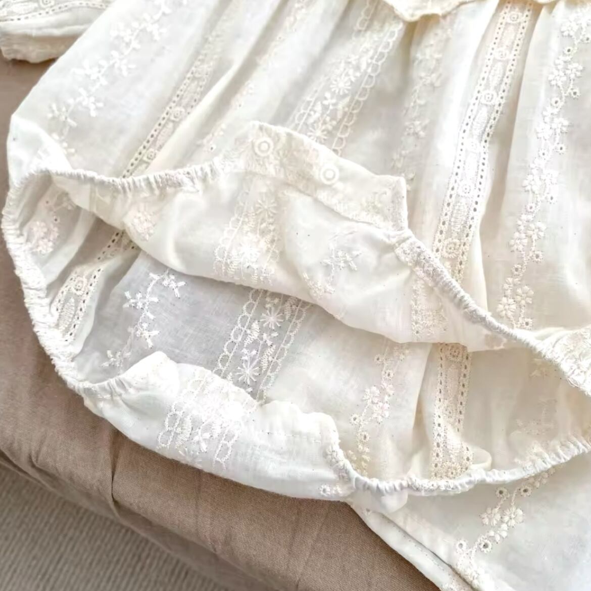 フラワー刺繍ワンピース・ロンパースは、華やかなフラワー刺繍が施された、特別感あふれる一着です。