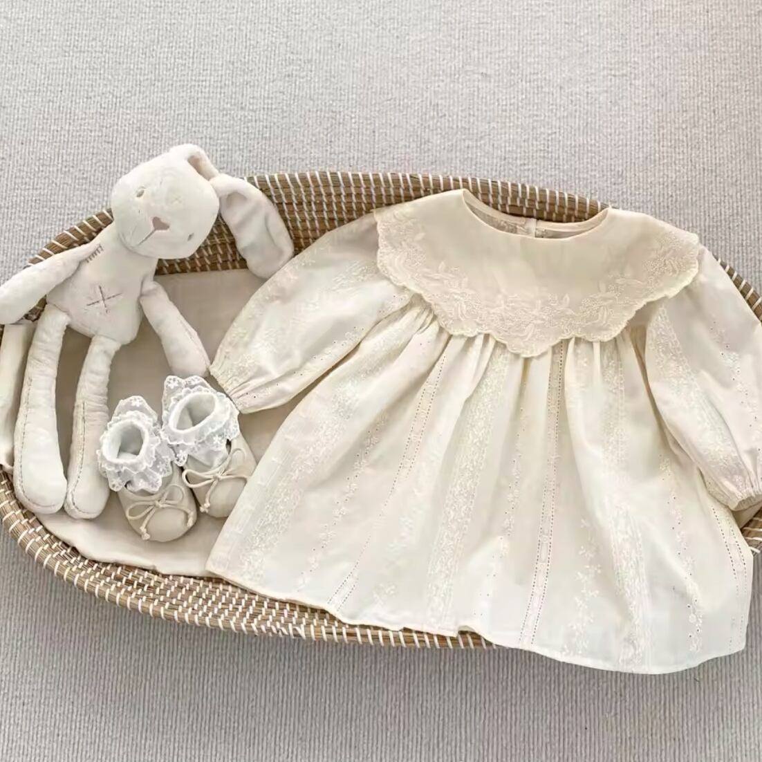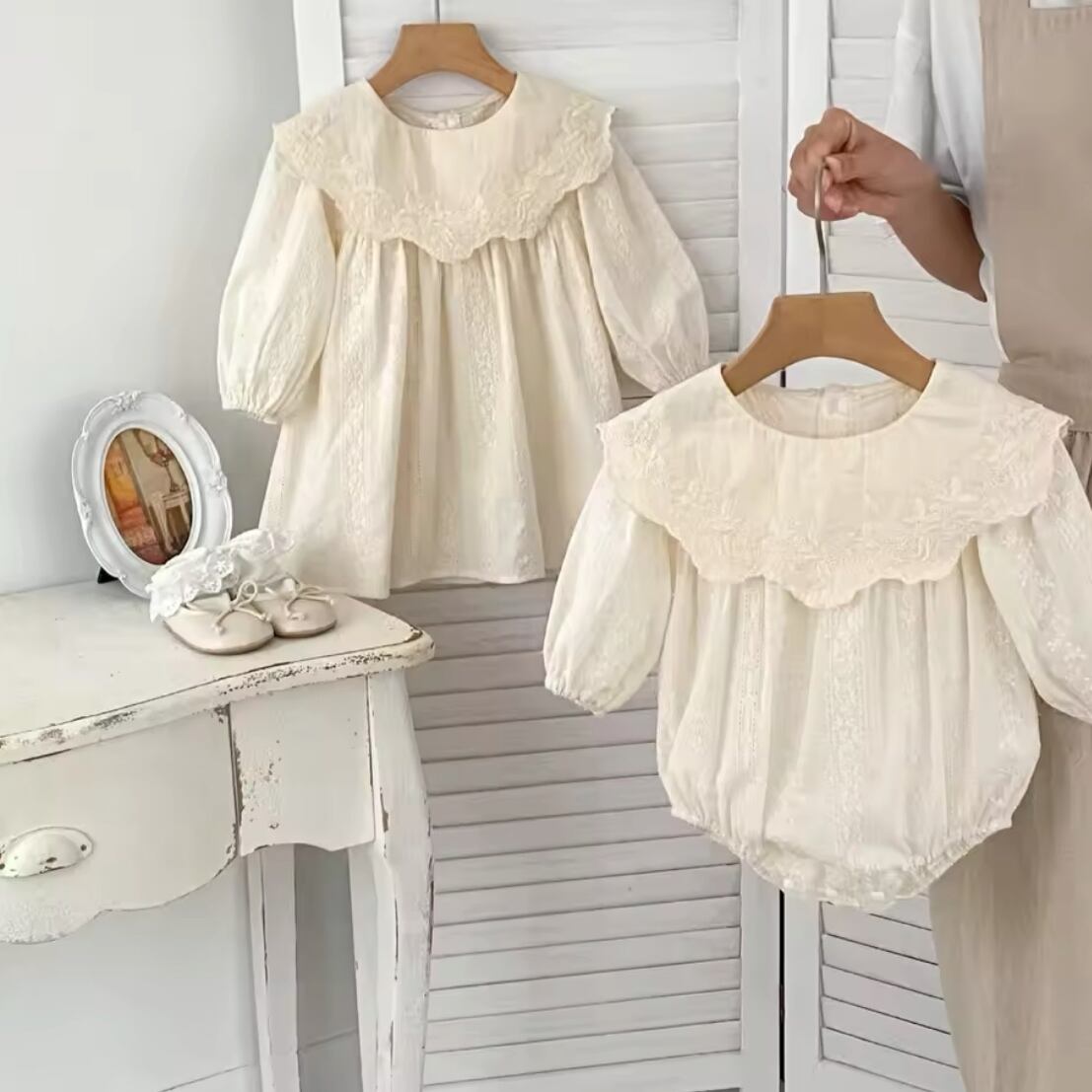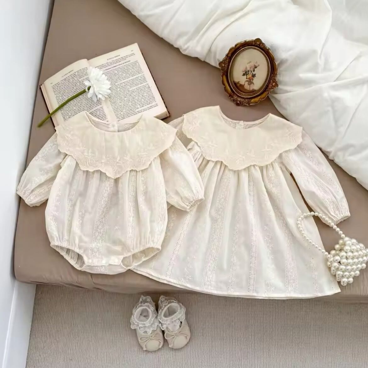 フラワー刺繍ワンピース・ロンパースは、華やかなフラワー刺繍が施された、特別感あふれる一着です。